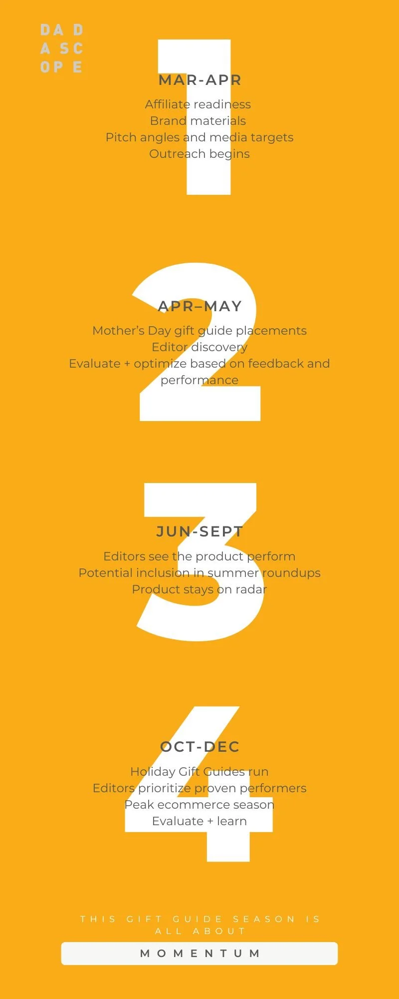 Introducing Dadascope’s Gift Guide Ignite Bundle, a two-part gift guide campaign designed to build the editorial traction that leads to peak holiday placements.